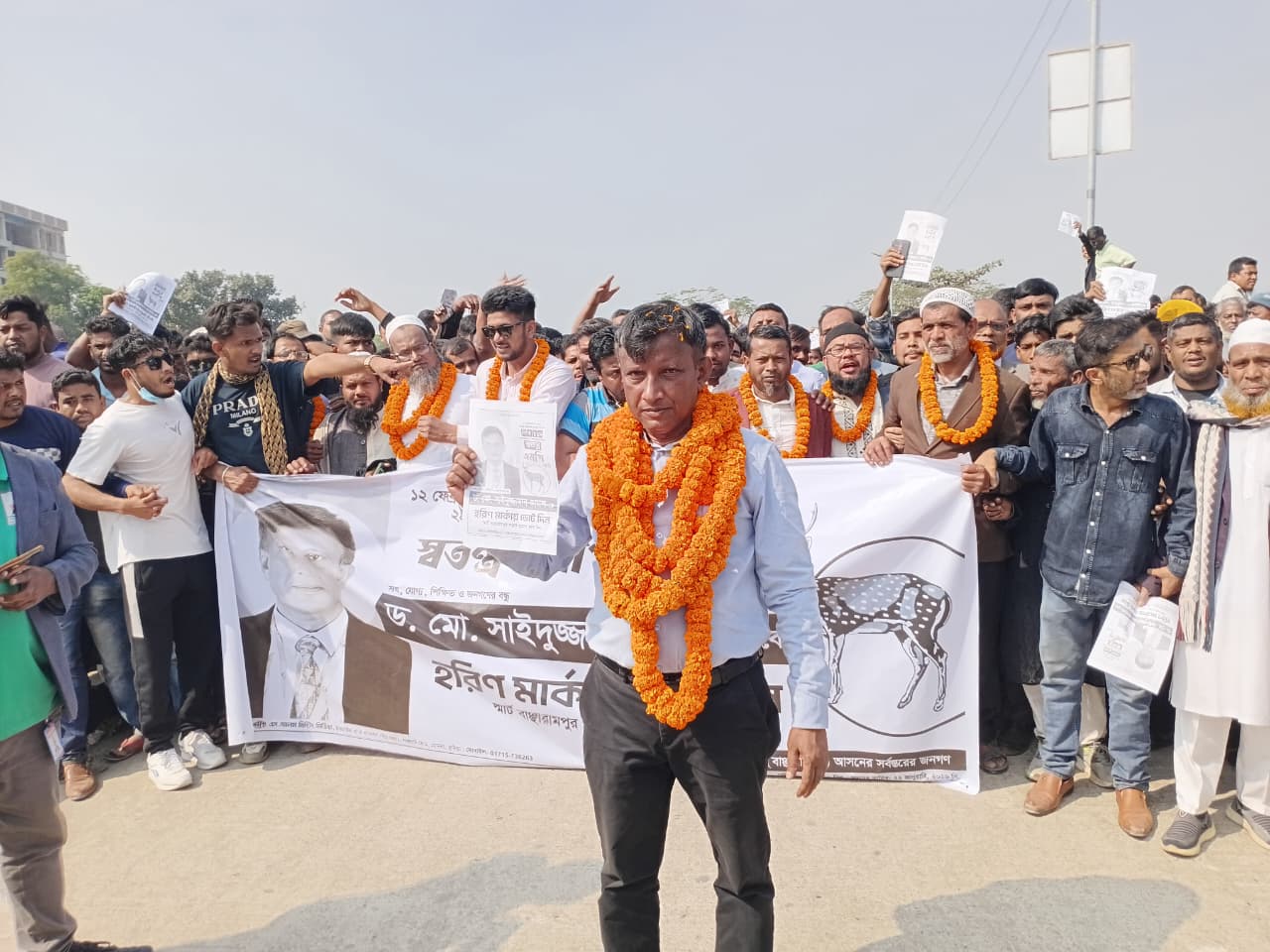ফ্যাসিবাদ ও ভোট ডাকাতির বিরুদ্ধে কঠোর হুঁশিয়ারি ব্রাহ্মণবাড়িয়া-৬ (বাঞ্ছারামপুর) আসনের স্বতন্ত্র সংসদ সদস্য প্রার্থী , হরিণ প্রতীকের প্রার্থী ড. মো. সাইদুজ্জামান কামালের নেতৃত্বে এক বিশাল গণমিছিল অনুষ্ঠিত হয়েছে।